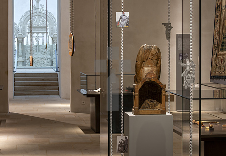 Ansicht aus der Ausstellung "Die Zirkulation von Arbeit Kapital und Leben als Lieferkette" von Alice Creischer und Andreas Siekmann im Dommuseum Hildesheim. Ausstellungszeitraum: 29.10.2025 bis 6. April 2026.