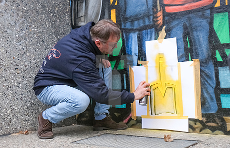 Bei der Kunst-Aktion zum offiziellen Start des umfangreichen Bauvorhabens am Gymnasium Mariano-Josephinum hat auch Gerhard Scheithauer (Schulleiter Albertus-Magnus-Schule) zur Spraydose gegriffen.