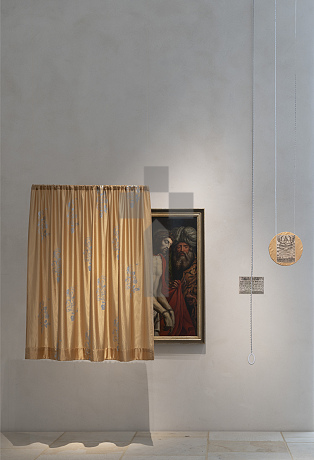 Ansicht aus der Ausstellung "Die Zirkulation von Arbeit Kapital und Leben als Lieferkette" von Alice Creischer und Andreas Siekmann im Dommuseum Hildesheim. Ausstellungszeitraum: 29.10.2025 bis 6. April 2026.